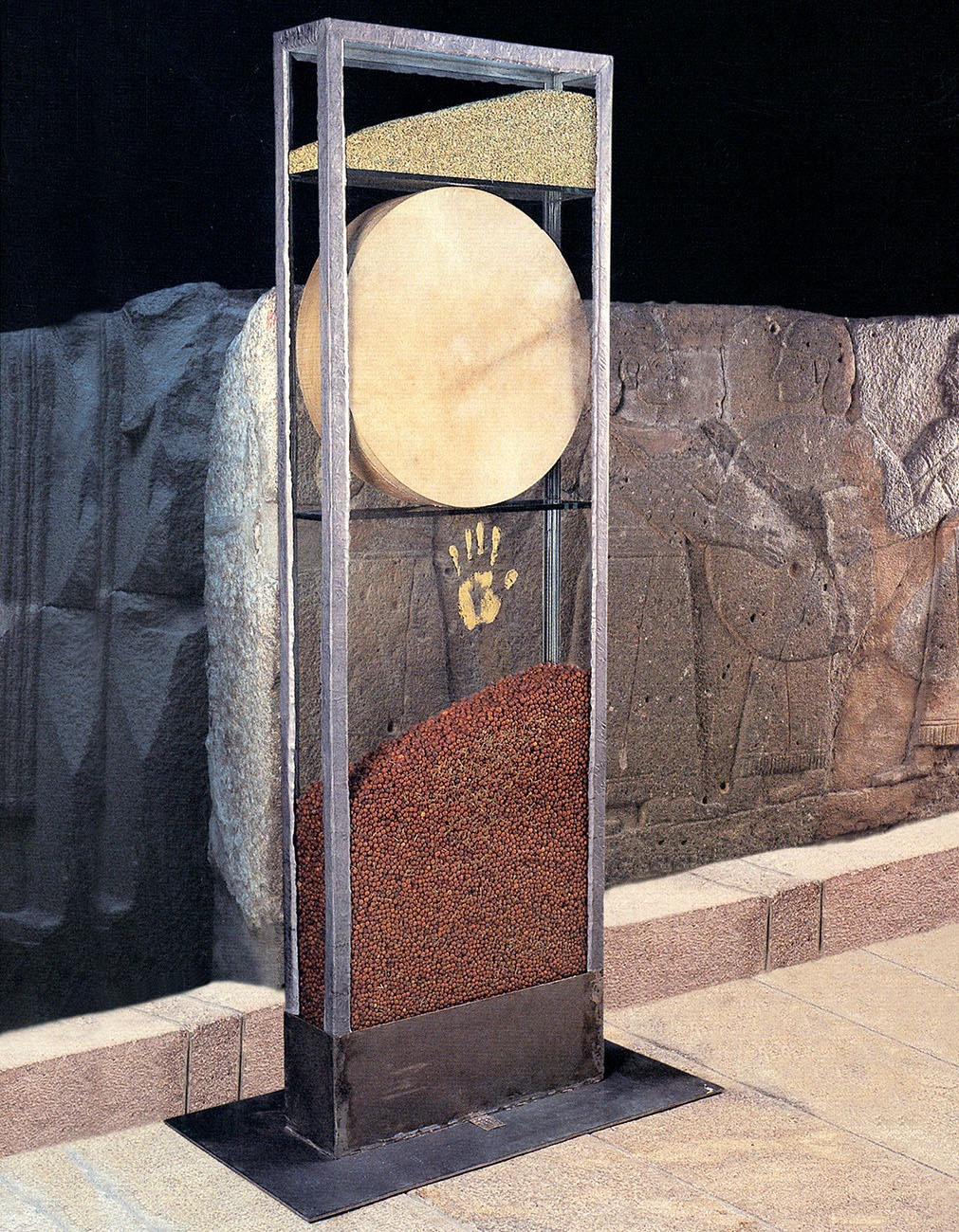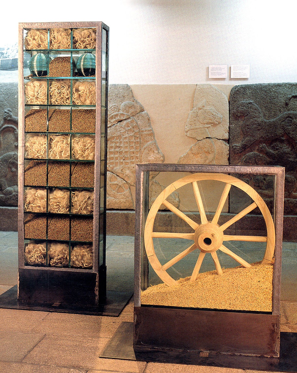 - I chose exactly 12 points from the orthostats in room A. The coffers of memory should stop in front or beside these reliefs and talk with them of yesterday and today. Most of the “objects” depicted in these reliefs are still found and are still being produced in the same places. This continuity should take its place in the coffers of memory. Exactly like my glass balls and traces of bodies that I have defined as life itself. Traces of a human being.